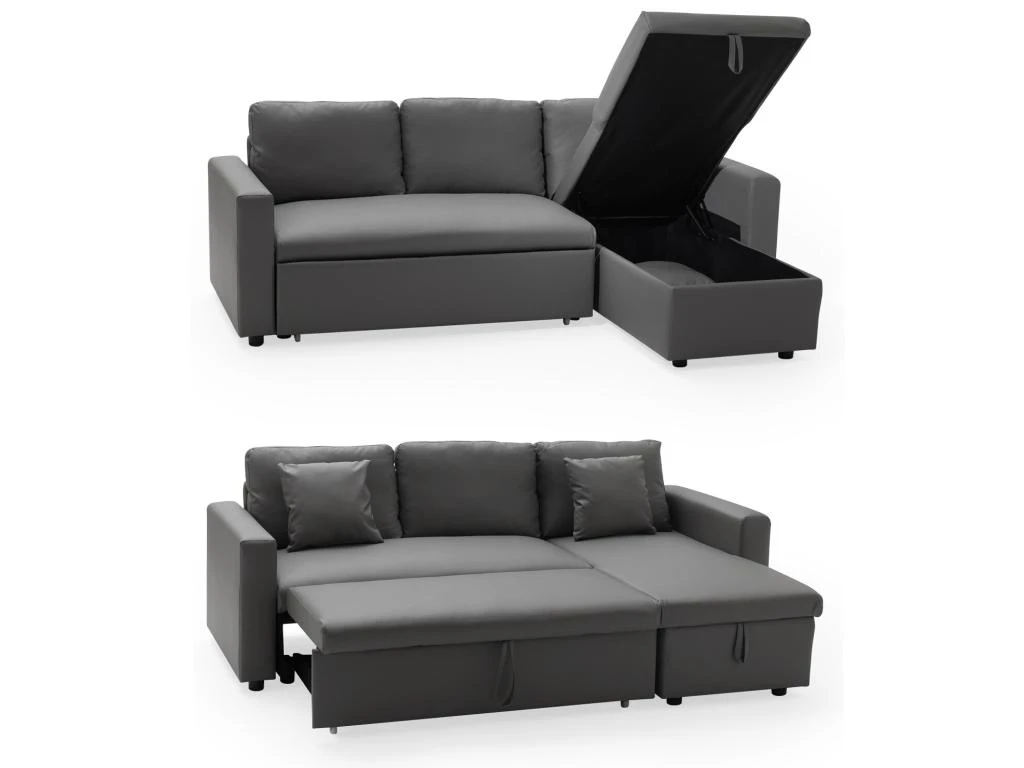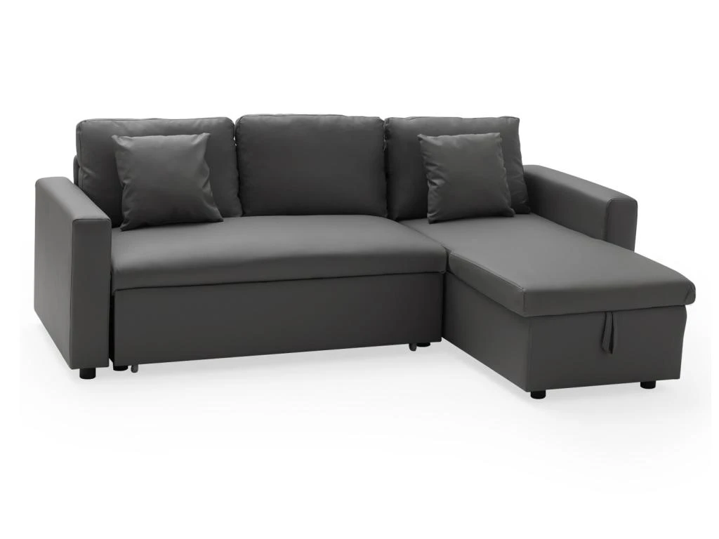 Amateurs de confort à prix doux, découvrez le canapé d’angle 3 places convertible CLARK ! Pratique, la méridienne vous permettra d’avoir les jambes allongées et de faire une petite sieste… Besoin d’un couchage, le canapé d’angle CLARK se transforme en quelques secondes en lit deux personnes très confortable. Il dispose également d’un coffre de rangement sous la méridienne, de quoi disposer couette et oreillers ou tout autre chose, c’est vous qui voyez !