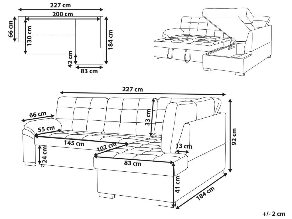 Caractéristiques clés: Facilement convertible en un canapé-lit, Assise profilée profonde, Style traditionnel avec une touche moderne, Facile à entretenir, Espace de stockage supplémentaire