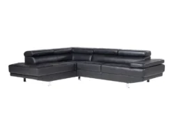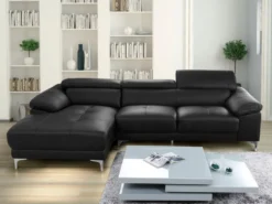 Canapé D’angle En Cuir Italien 7 Places LUXEMBOURG, Noir, Angle Gauche
