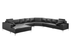 Canapé Panoramique 7 Places Cuir Supérieur DONATELLO II – Noir – Angle Gauche