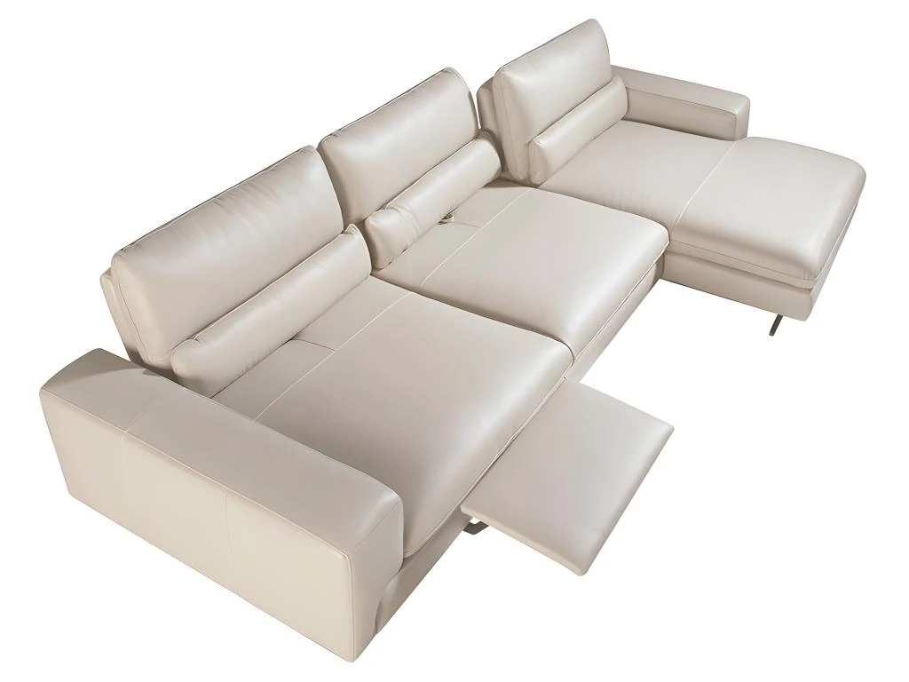 Canapé chaise longue droite au design moderne tapissé en cuir de vachette de 1,25 mm d’épaisseur, coloris gris taupe. Sièges conçus pour s’adapter aux utilisateurs les plus exigeants grâce à son mécanisme d’inclinaison du dossier. Il est doté d’un siège avec un mécanisme de relaxation électrique qui vous offre un confort supplémentaire pour votre repos. Un canapé au style unique et minimaliste, avec une structure interne robuste en bois de pin naturel et des pieds en acier inoxydable noir qui lui donnent cette touche de tendance et d’élégance que vous recherchez pour votre salon. Le détail élégant et discret des boutons en cuir est à l’origine de cette touche distinctive et spéciale que nous souhaitons tous avoir dans notre maison