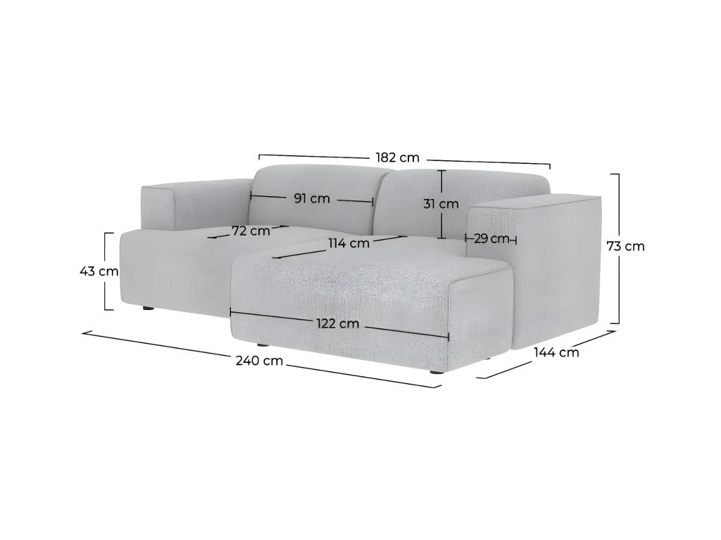 – Longueur d’assise : 182 cm