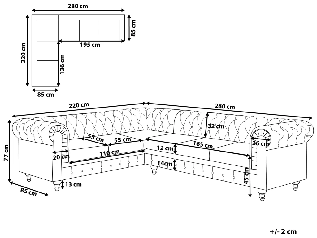 Caractéristiques clés: Surface d’assise large et confortable, Accoudoirs parfaitement assortis, Assise large et bien rembourrée pour le meilleur confort, Look de chesterfield élégant, Construction durable et stable, Housses amovibles, Entièrement rembourré sur tous les côtés, Patins pour le pieds assurent la protection contre les rayures