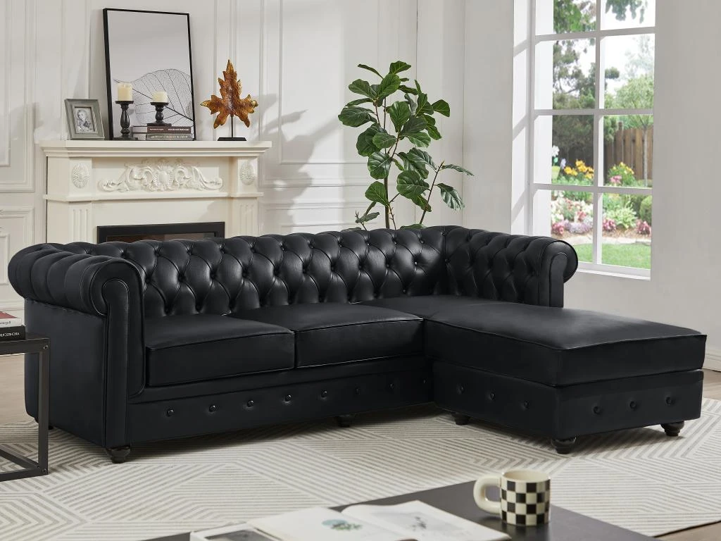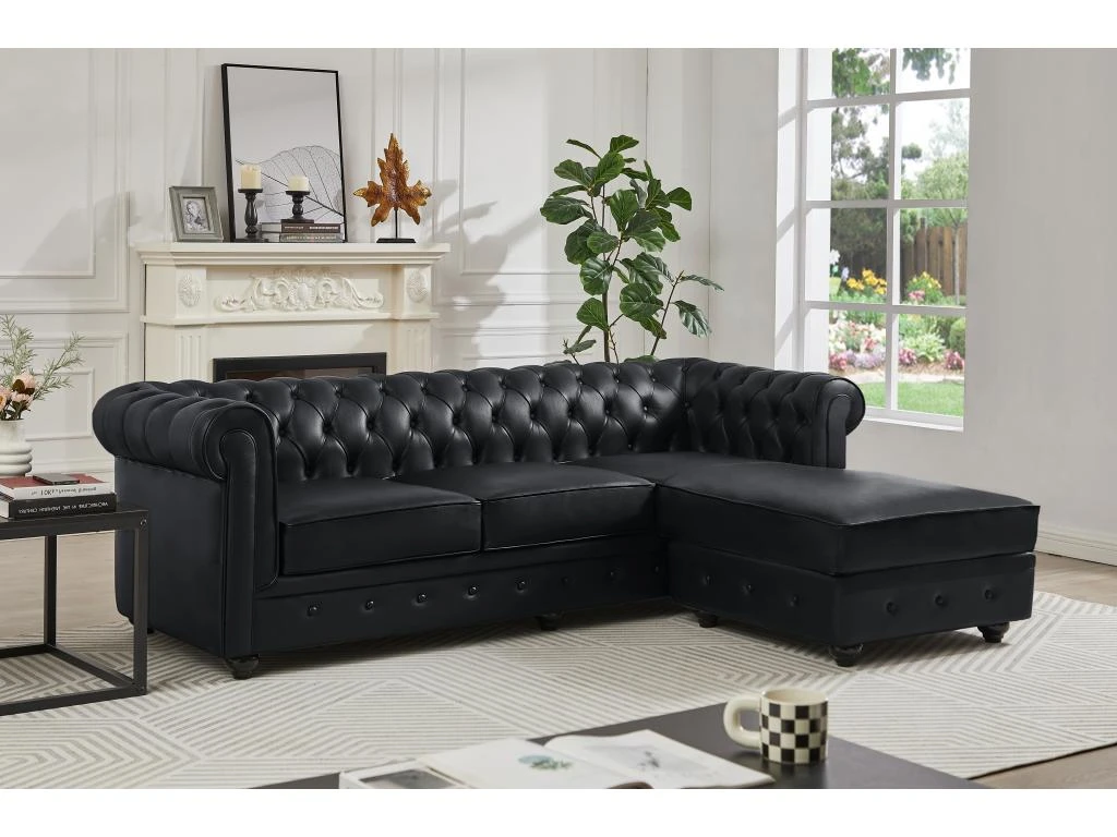 Vous souhaitez ajouter une touche d’élégance à votre espace de vie ? Optez pour le canapé d’angle chesterfield en cuir de vachette TOLEDO. Le design chesterfield est un véritable symbole du style intemporel. Son allure classique et son assise capitonnée sauront apporter une touche de charme à votre intérieur !