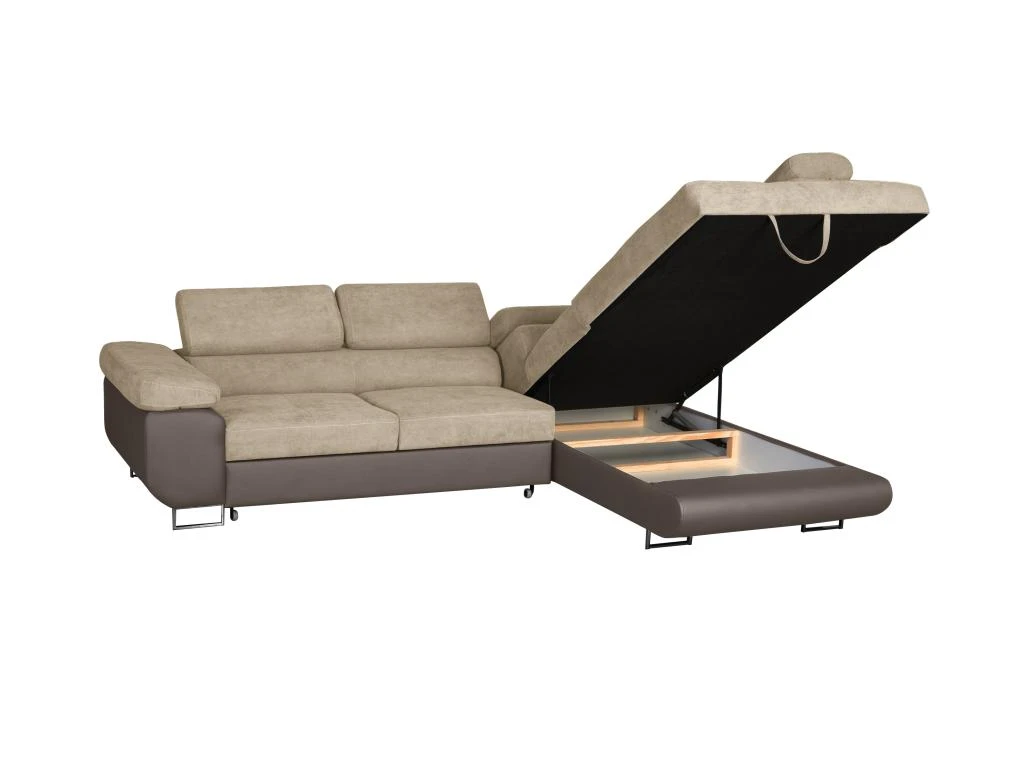 Vous souhaitez vous offrir une expérience de détente inégalée ? Découvrez le canapé d’angle convertible KERIO II, idéal pour ceux qui recherchent une combinaison parfaite de confort et de fonctionnalité. Transformez facilement ce canapé en un lit confortable pour les invités grâce à son mécanisme de conversion simple et maximisez votre espace de vie en utilisant le coffre de rangement intégré.