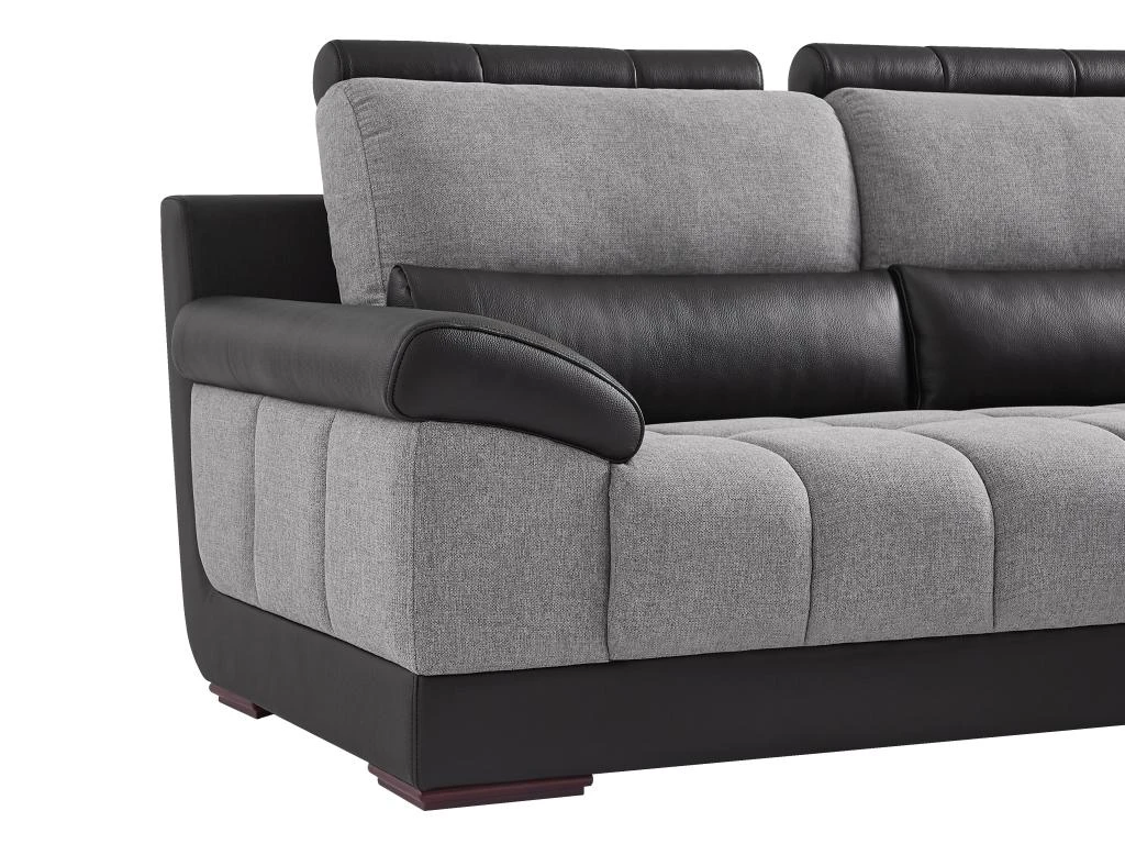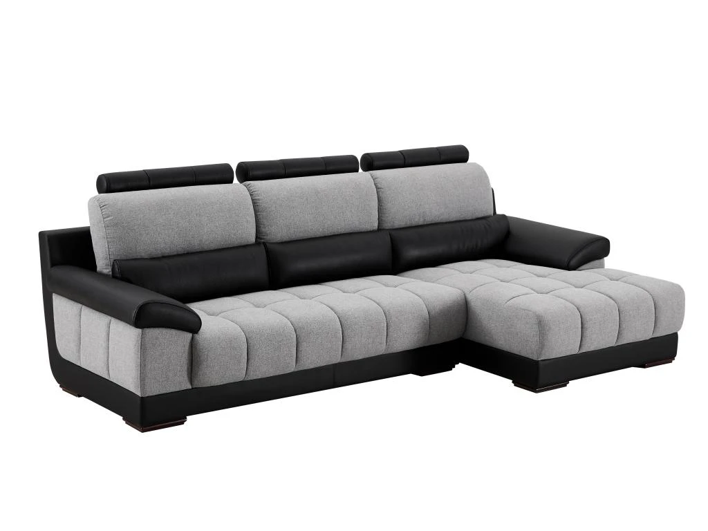 Besoin d’un canapé aussi confortable qu’accueillant ? Le canapé d’angle ARAGON est fait pour vous. Son revêtement en tissu et simili lui confère un style contemporain singulier. Doté de 3 têtières amovibles, vous pourrez y passer d’agréables moments de détente. Enfin, ses capitons renforcent son caractère confortable. Vous ne serez donc pas déçu par le canapé d’angle ARAGON bi-matière et bicolore au style unique !