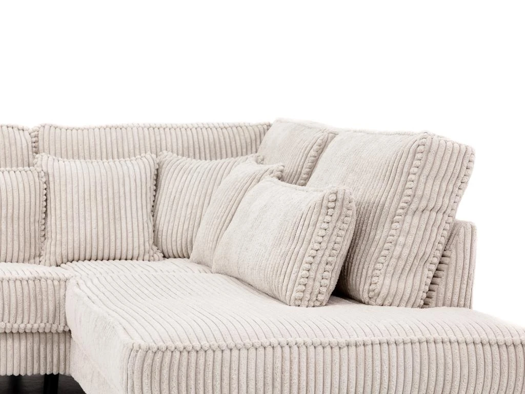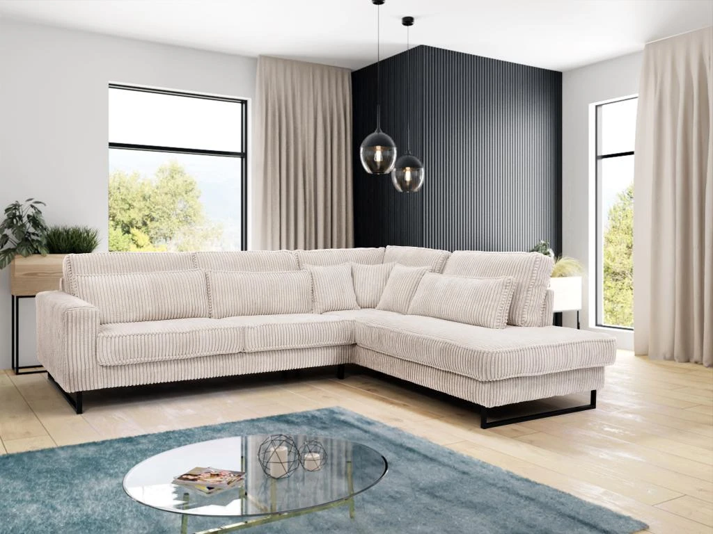 Vous êtes en quête de la pièce maîtresse de votre intérieur ? Optez pour la touche design suscitée par le canapé d’angle TESSIO assorti de coussins décoratifs. Son revêtement en velours côtelé et son piètement en métal métamorphoseront votre salon en la pièce la plus tendance de votre maison !