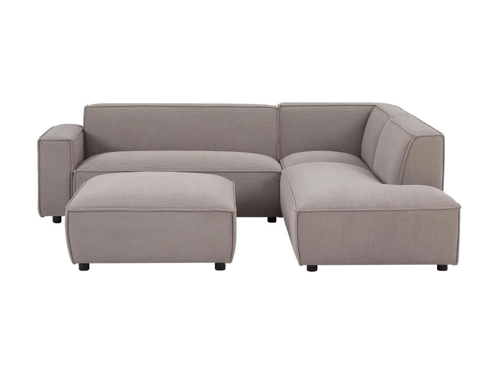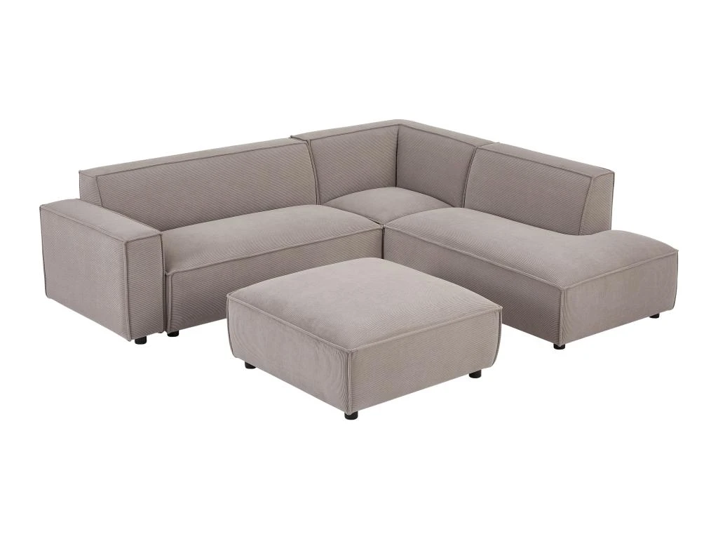 Vous allez adorer les finitions soignées et le charme du canapé d’angle BORORE et de son pouf assorti. Son revêtement en velours côtelé et ses pieds en bois noir font de lui un canapé tendance au confort dont vous ne pourrez plus vous passer.