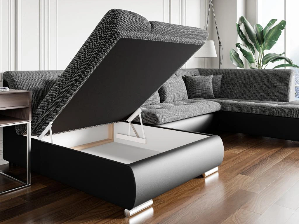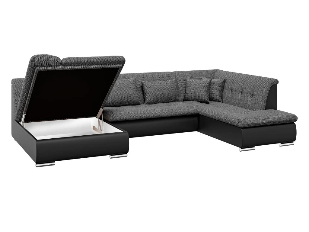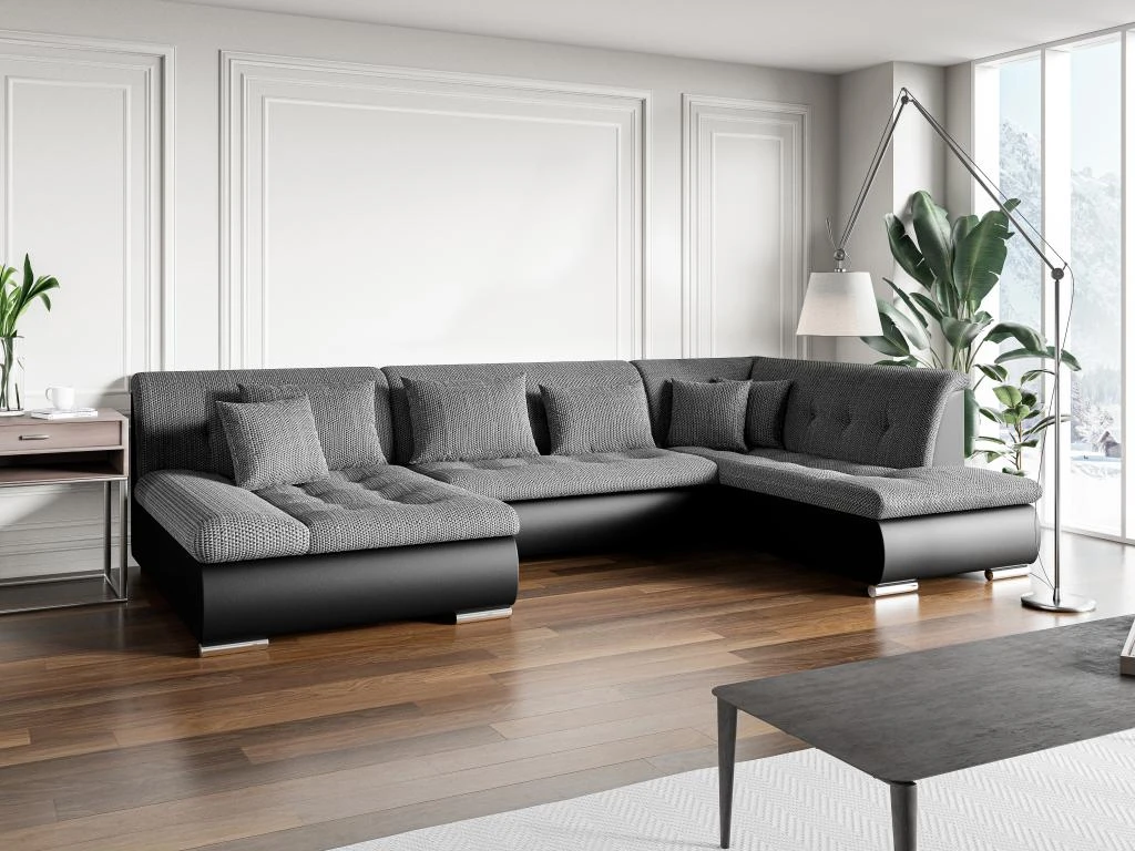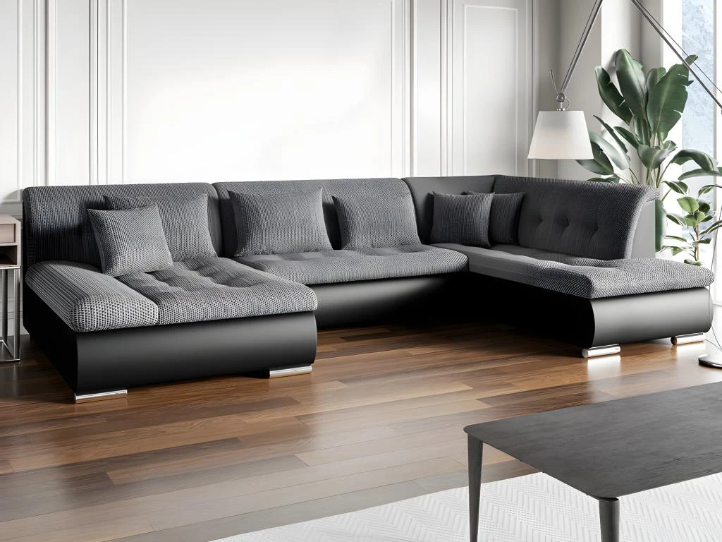 Vous désirez un canapé au style contemporain ? Succombez au charme du canapé en tissu texturé et simili SONDRIO ! Son angle panoramique vous permettra de profiter de moments conviviaux tandis que son mécanisme convertible vous offrira un couchage en quelques secondes. Son revêtement en tissu et simili gris et noir apporte une touche d’originalité au canapé tandis que ses pieds en métal lui confèrent une finition moderne.