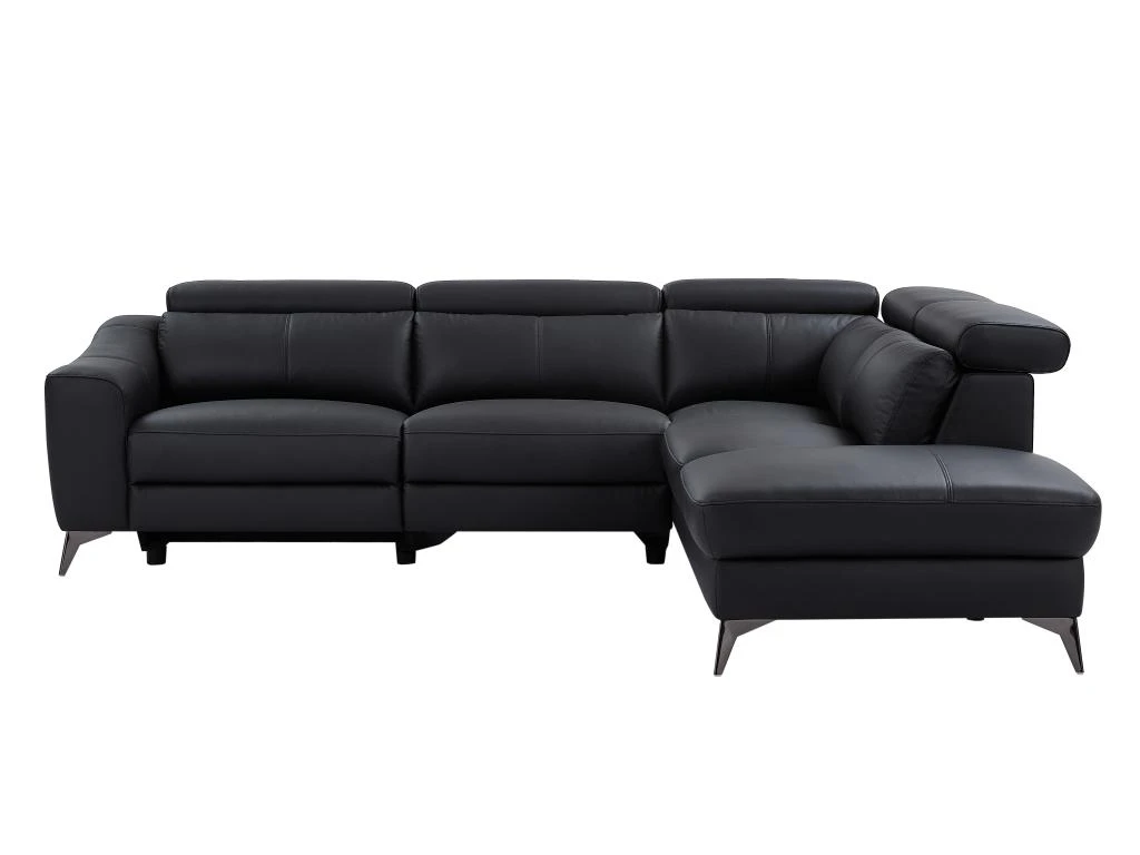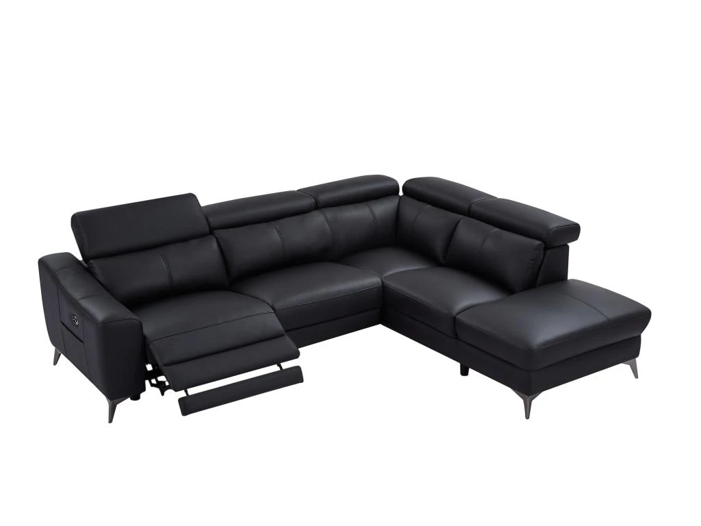 Des boutons sur le côté des accoudoirs vous permettent d’incliner le dossier, la têtière et le repose-pieds à votre convenance sans reculer le dossier, ce qui évite toute perte de place. vous pouvez donc coller le canapé à votre mur sans souci !