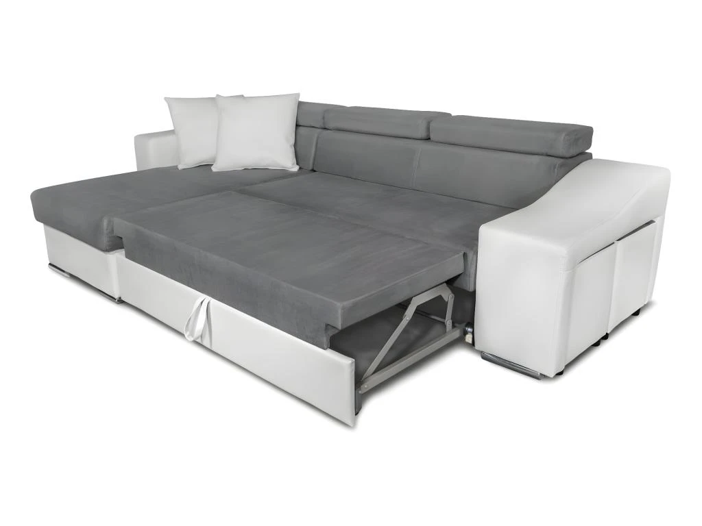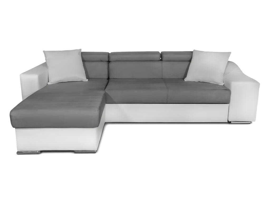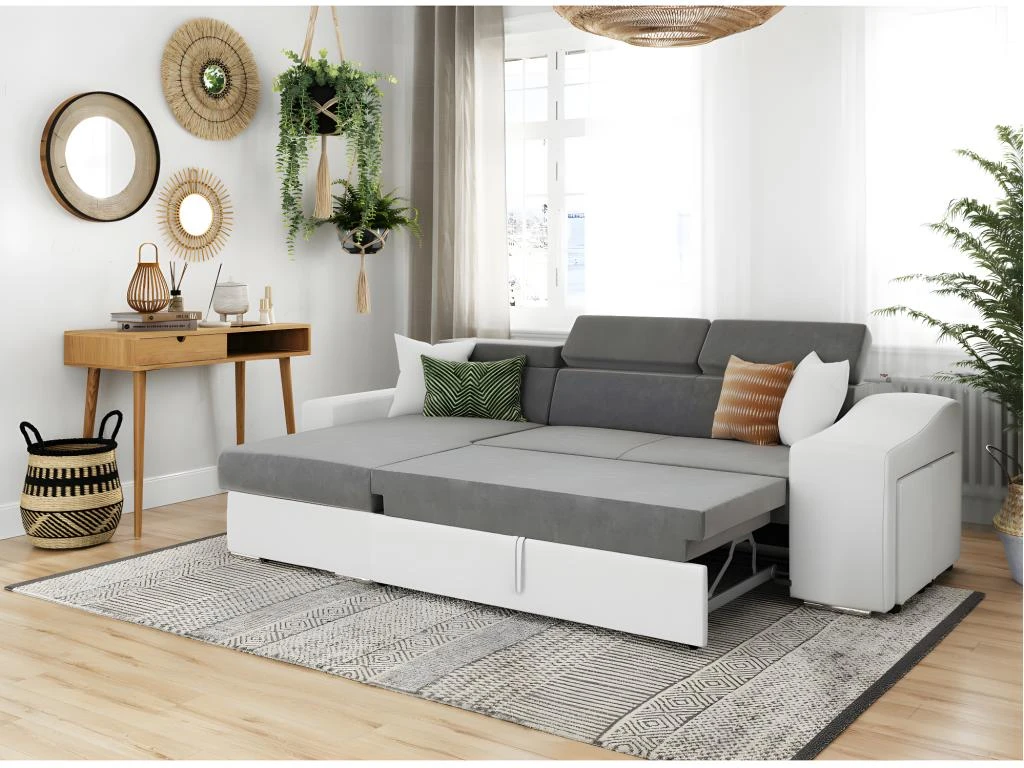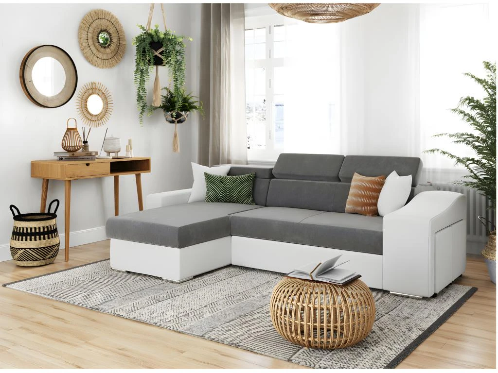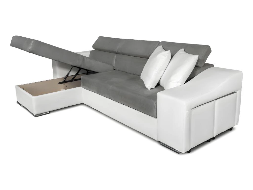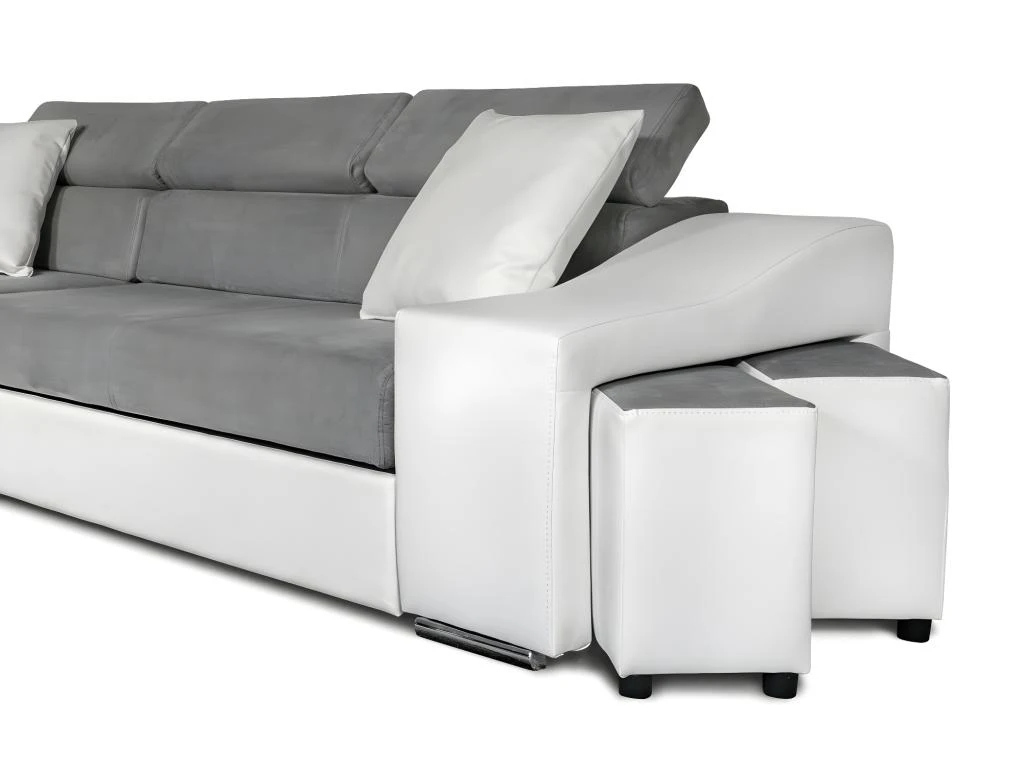 Canapé D’angle ELONA Convertible Bi-matière Blanc Et Gris Avec Poufs De Rangement à Droite