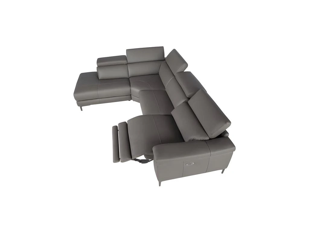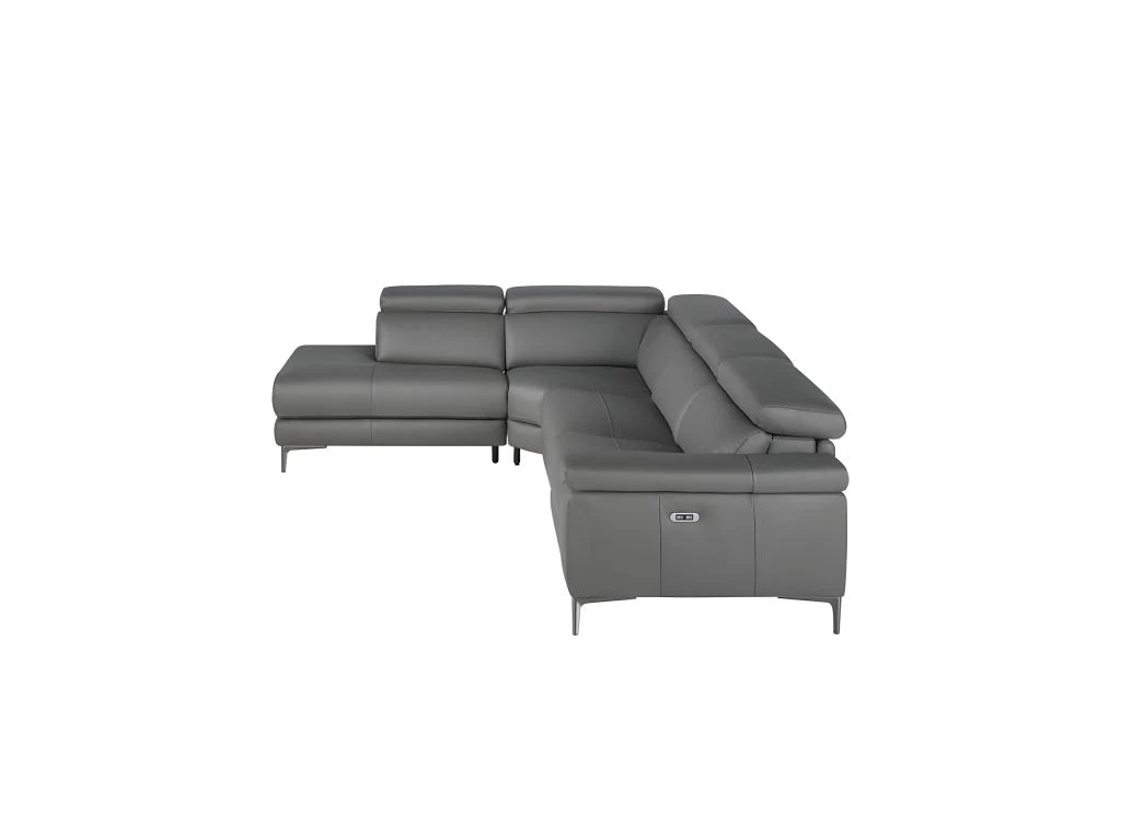Canapé d’angle au design moderne, tapissé en cuir de vachette de 1 mm d’épaisseur, couleur cuir gris , avec appuis-tête indépendants réglables. Un canapé d’angle au style minimaliste et unique, avec une structure interne robuste en bois de pin naturel et des pieds en acier teinté époxy noir qui lui donnent la touche de tendance et d’élégance que vous recherchez pour votre salon. Son siège latéral avec mécanisme de relaxation électrique vous offre le confort supplémentaire dont vous avez besoin pour profiter de votre moment de tranquillité. La combinaison parfaite du design, de l’élégance et du confort. Canapé d’angle gauche