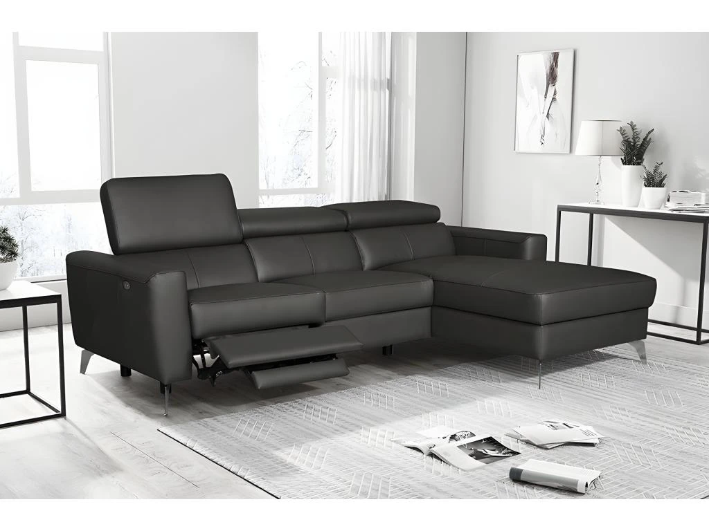 Très joli canapé en cuir luxe italien de vachette dispose d’un relax électrique. Ce canapé très pratique dispose d’un style contemporain et actuel tendance, il vous procurera un excellent confort, pour passer des moments agréables. Appui-teêtes réglables multipositions. Très belle qualité de fabrication. Fabrication européenne.