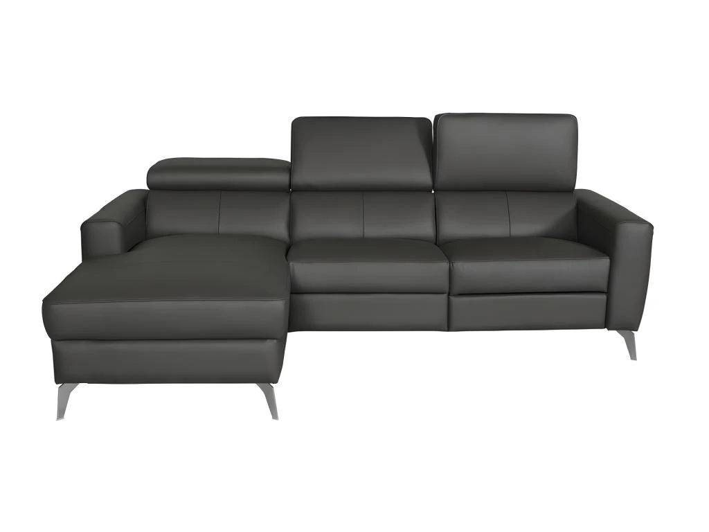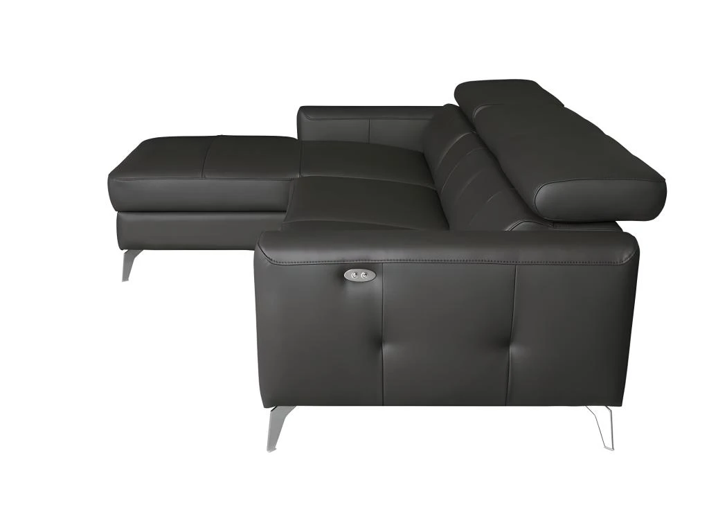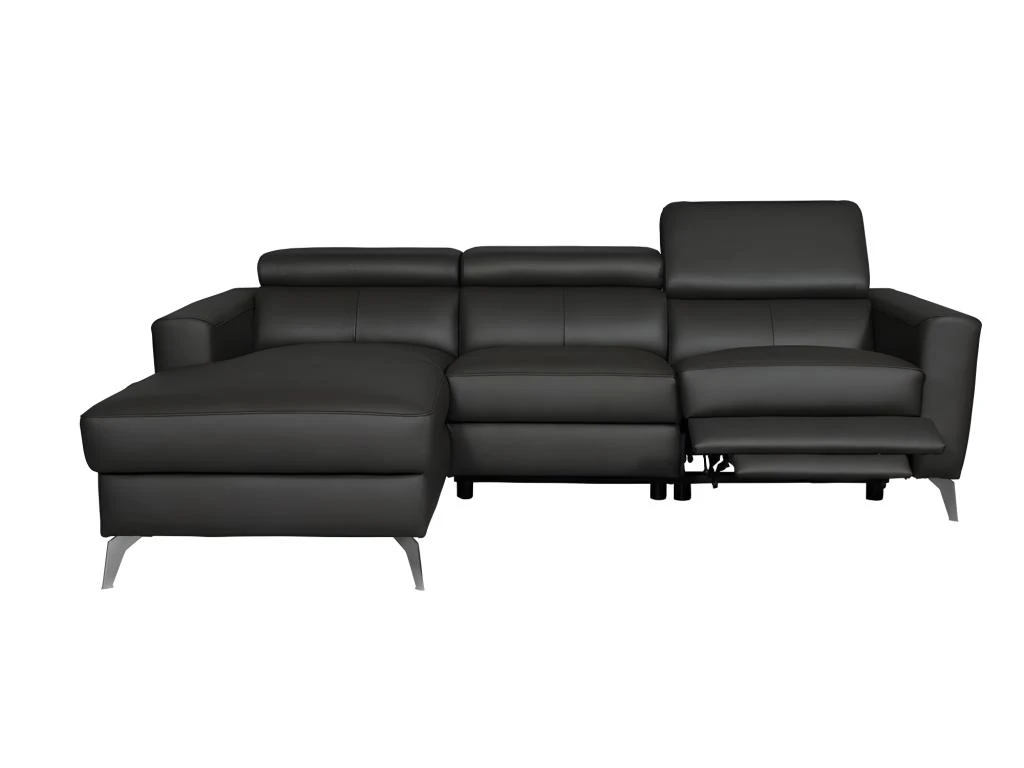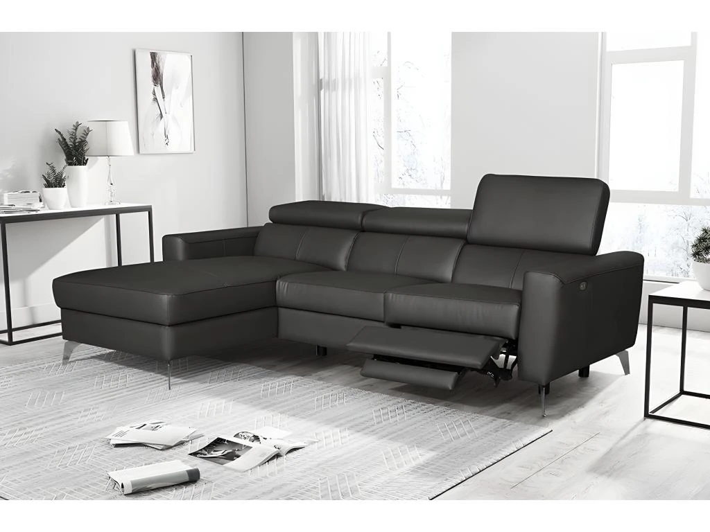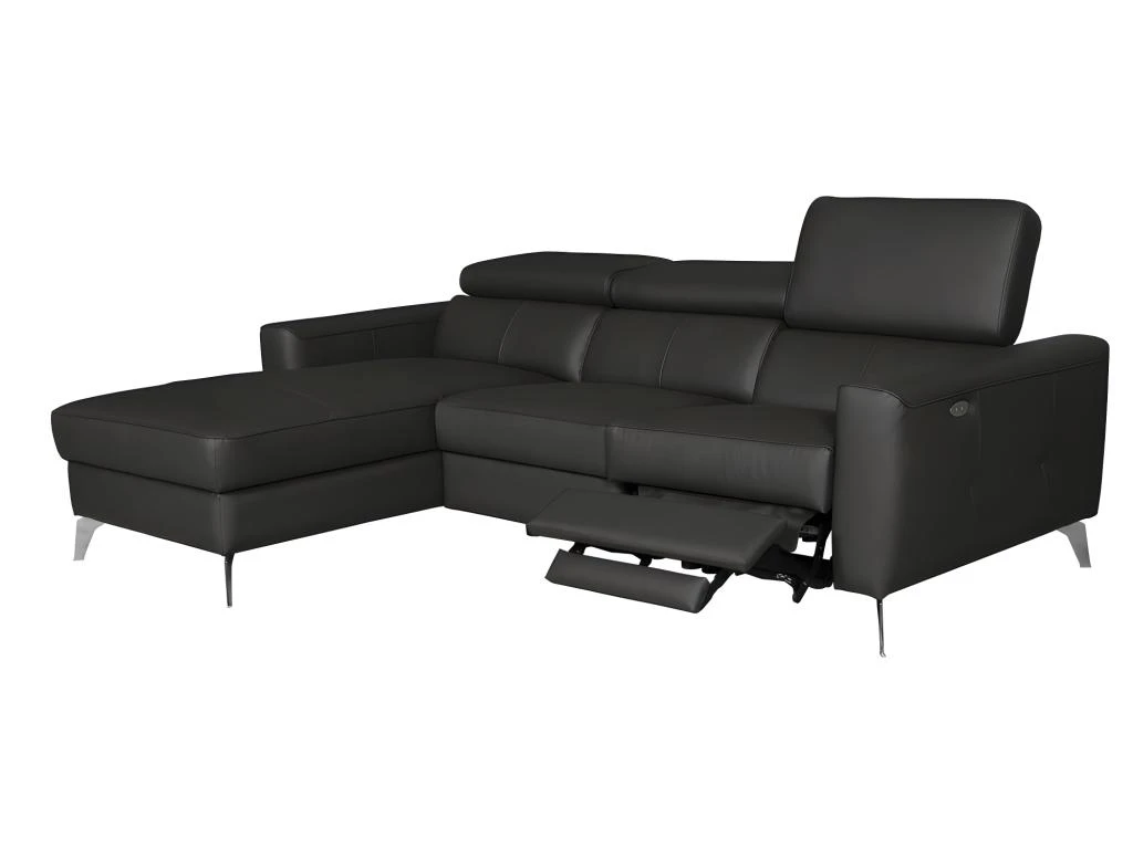 Canapé D’angle En Cuir Italien De Luxe 5 Places BOTERO, Avec Relax électrique, Noir, Angle Gauche
