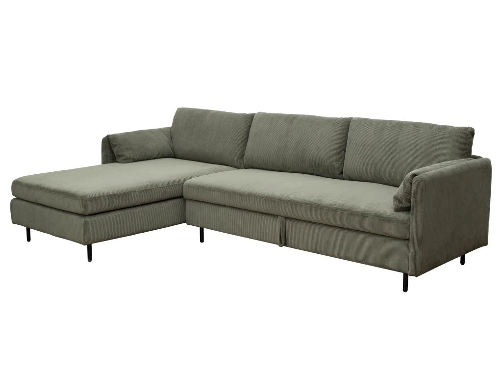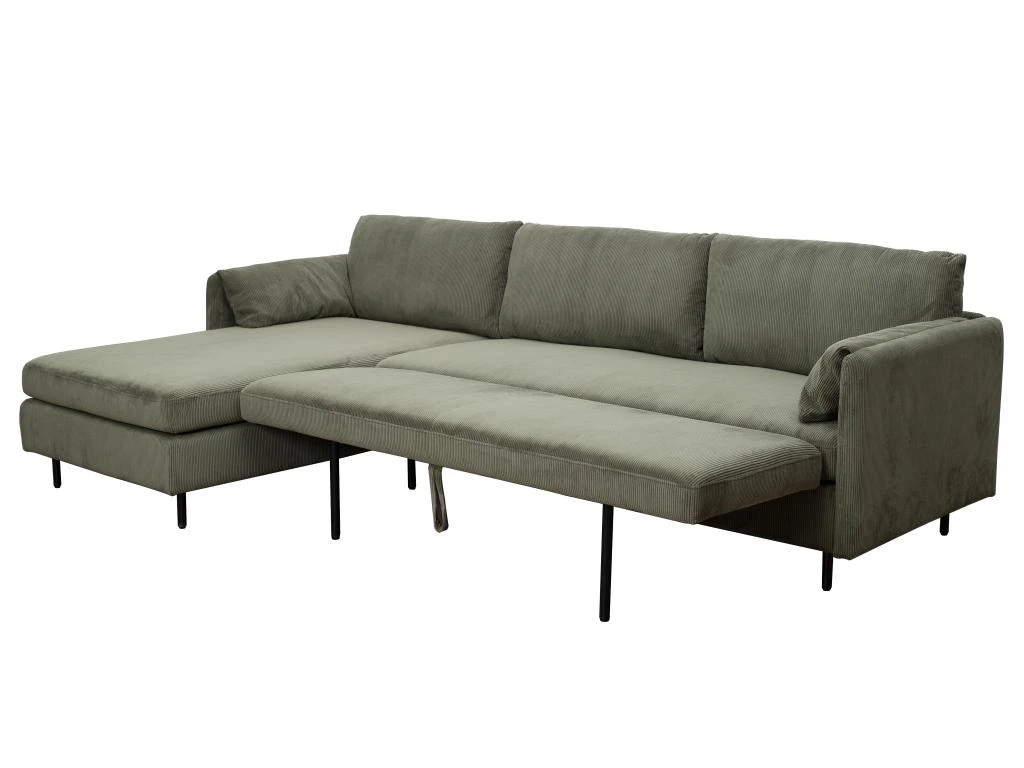 Vous recherchez un canapé au style contemporain ? Optez pour le canapé d’angle ALEXANDRA ! Son revêtement en velours côtelé doux et coloré apportera une touche de lumière à votre salon et sera l’allié de vos moments de détente ! Ses pieds en métal ajoutent une finition moderne au canapé tandis que son mécanisme convertible vous offrira un couchage de manière simple et rapide.