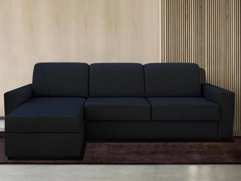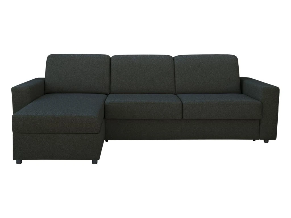 Vous recherchez un canapé convertible express ? Adoptez le canapé d’angle TORASI ! Son revêtement en tissu lui donne un charme élégant et intemporel, parfait si vous avec envie d’un canapé qui s’intègre à tous types d’intérieurs. Grâce à son mécanisme convertible express, transformez votre canapé en un couchage de manière rapide et efficace et profitez du coffre de rangement situé sous la méridienne.