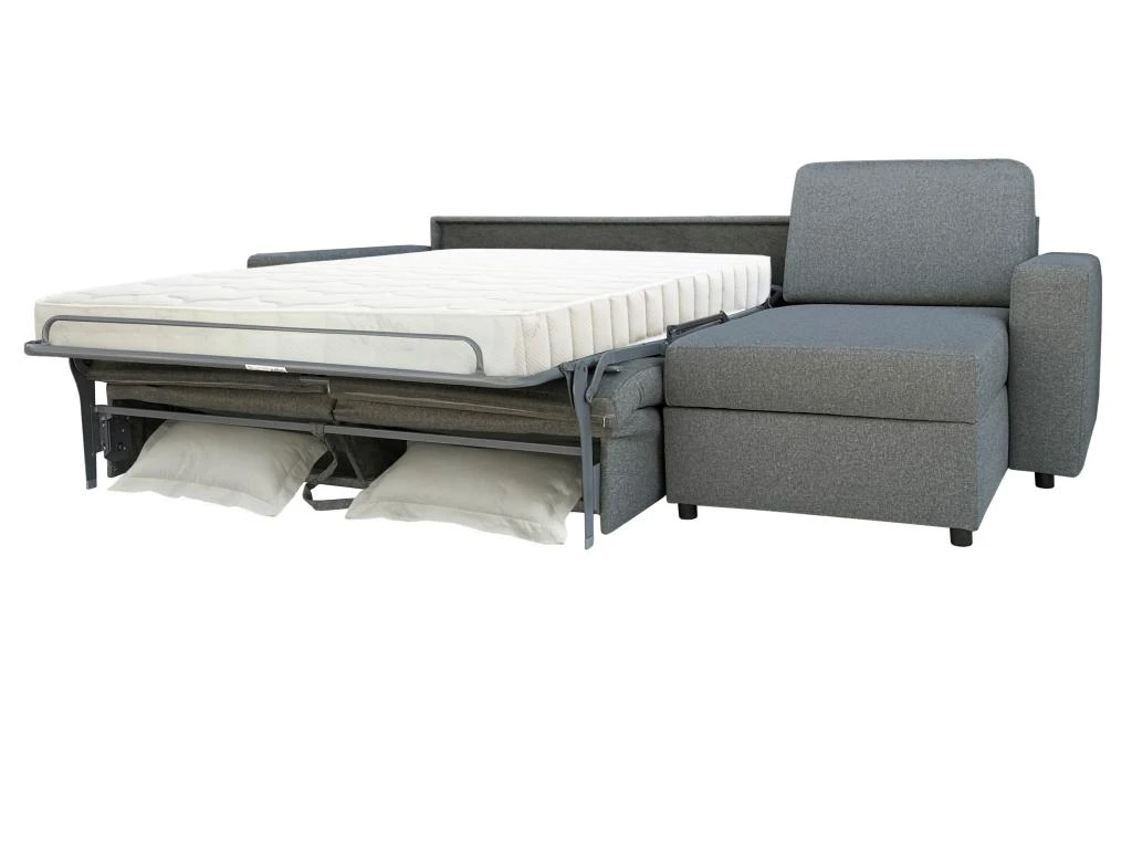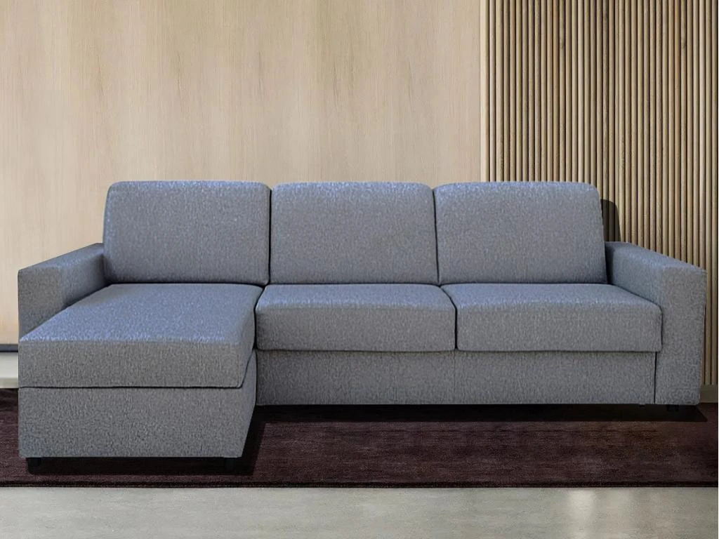 Vous recherchez un canapé convertible express ? Adoptez le canapé d’angle TORASI ! Son revêtement en tissu lui donne un charme élégant et intemporel, parfait si vous avec envie d’un canapé qui s’intègre à tous types d’intérieurs. Grâce à son mécanisme convertible express, transformez votre canapé en un couchage de manière rapide et efficace et profitez du coffre de rangement situé sous la méridienne.
