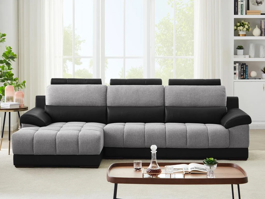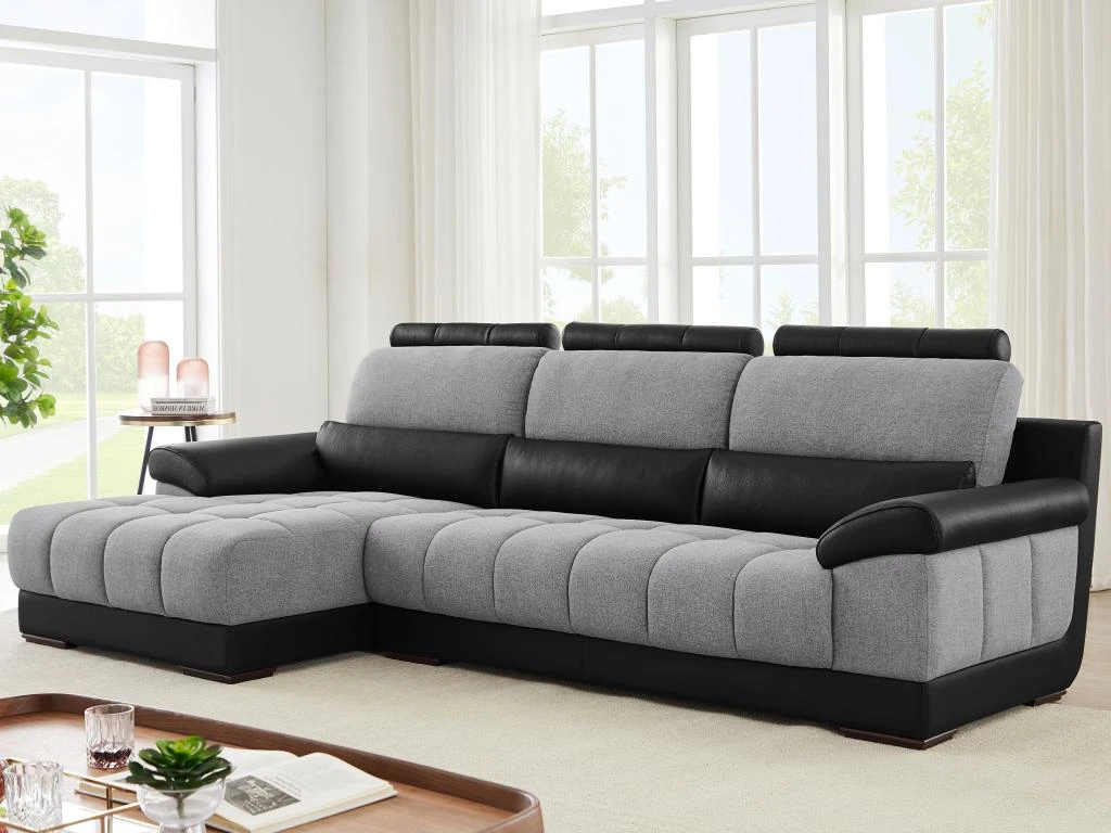 Besoin d’un canapé aussi confortable qu’accueillant ? Le canapé d’angle ARAGON est fait pour vous. Son revêtement en tissu et simili lui confère un style contemporain singulier. Doté de 3 têtières amovibles, vous pourrez y passer d’agréables moments de détente. Enfin, ses capitons renforcent son caractère confortable. Vous ne serez donc pas déçu par le canapé d’angle ARAGON bi-matière et bicolore au style unique !