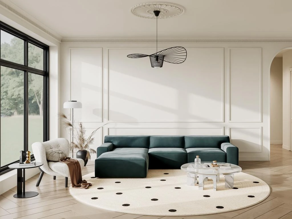 Vous serez séduits par la douceur du canapé OTRANO grâce à son revêtement en velours. La large méridienne vous offre un vaste espace de détente tandis que les confortables coussins d’assise vous permettront de profiter de moments conviviaux en famille ou entre amis.