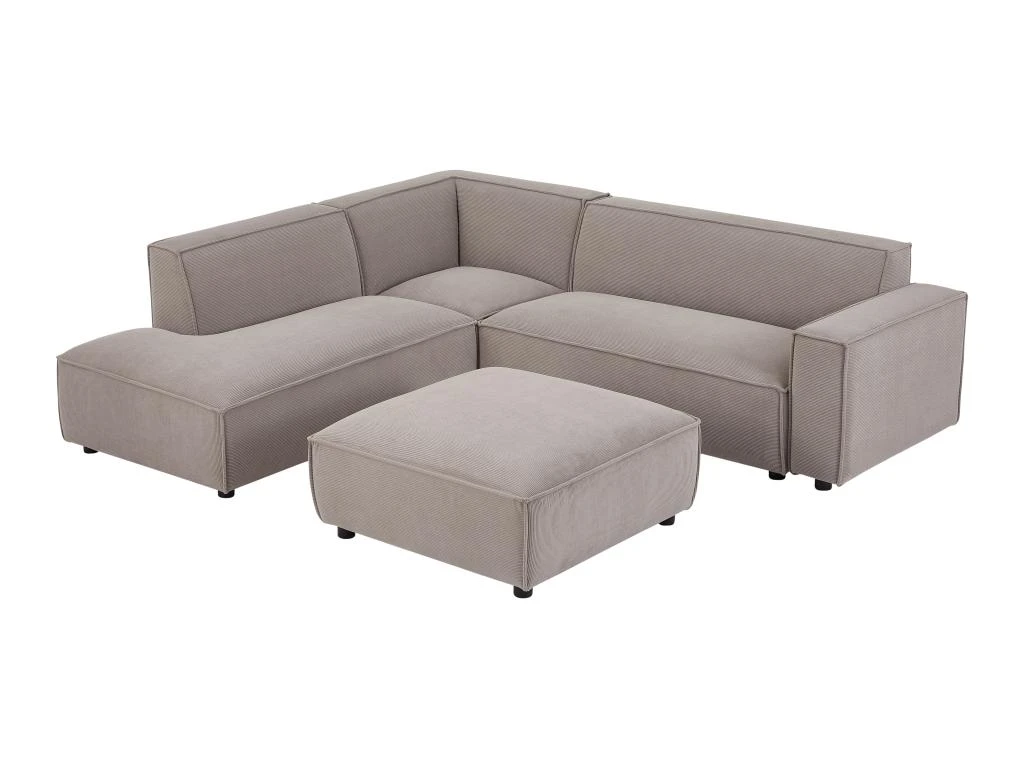 Vous allez adorer les finitions soignées et le charme du canapé d’angle BORORE et de son pouf assorti. Son revêtement en velours côtelé et ses pieds en bois noir font de lui un canapé tendance au confort dont vous ne pourrez plus vous passer.