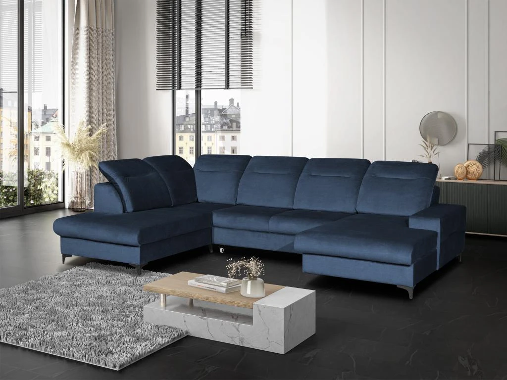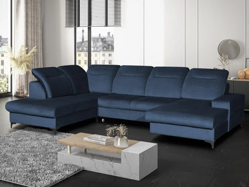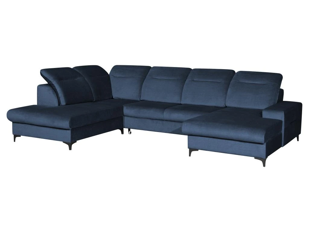 Vous recherchez un canapé d’angle panoramique avec des têtières relax ? Craquez pour le canapé SANTANA ! Son angle panoramique vous permettra d’accueillir votre famille et vos amis pour profiter de moments conviviaux. Avec ses pieds en métal, son revêtement et ses coloris tendances, ce canapé saura vous séduire par son style contemporain. Grâce à son mécanisme convertible et ses coffres de rangement situés sous l’assise de chaque méridienne, le canapé SANTANA est également très fonctionnel.