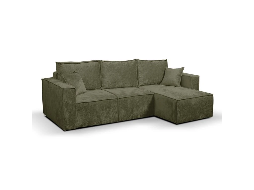 Caractéristiques : Canapé méridienne 3 places – Angle réversible : la méridienne peut être placée à droite ou à gauche lors du montage – Convertible en lit d’appoint – Ouverture facile : avance de l’assise soutenu par le système de dépliage automatique DL et bascule du dossier – Mécanisme avec ralentisseur – Coffre de rangement : poids maximum 8kg – 3 coussins de dossier – 2 Coussins décoratifs – Coussins de dossier et décoratifs déhoussables – Existe en 8 coloris