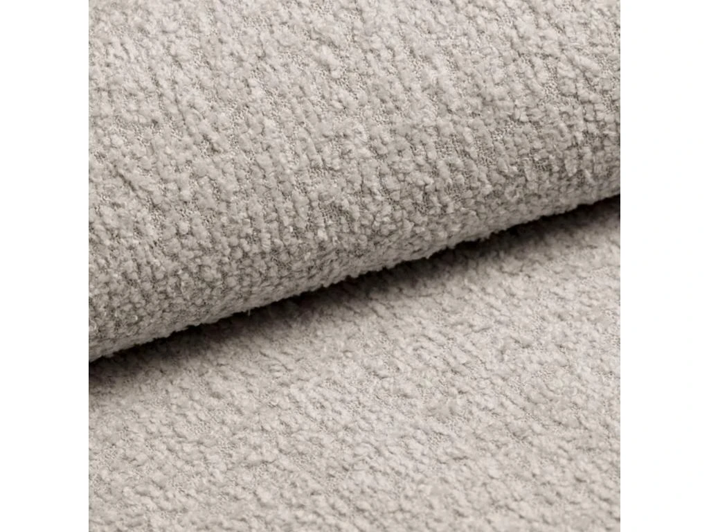 Matériaux : Revêtement : Tissu type bouclé (tissage très serré et torsadé) – Rembourrage de l’assise : mousse de polyuréthane T28 épaisseur 11 cm et ressorts ondulés – Rembourrage du dossier : mousse T25 épaisseur 8 cm – Piétement ABS noir