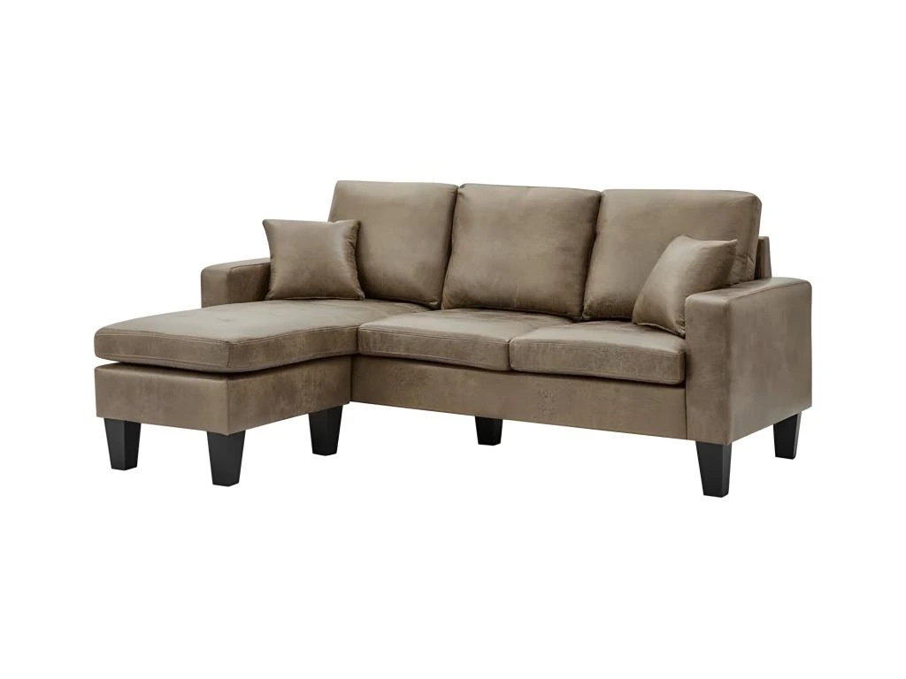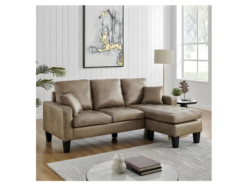 Canapé Angle à Droite Convertible En Simili-cuir Marron Foncé 3 Places OGNA