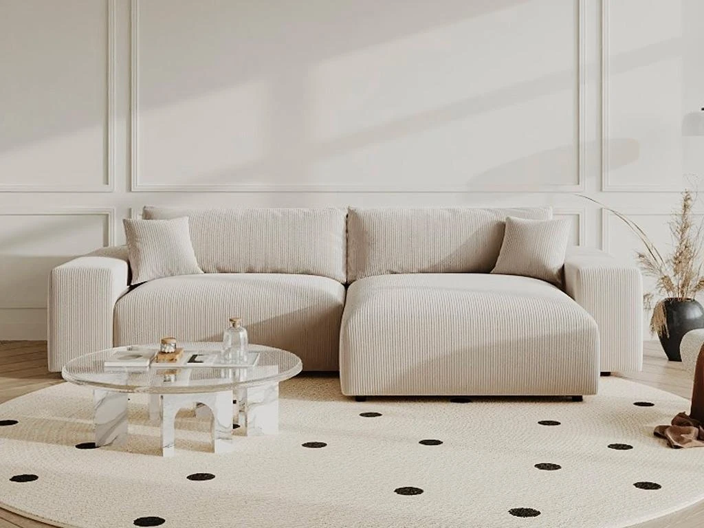 À la recherche d’un canapé d’angle à la fois confortable et esthétique ? Le canapé d’angle réversible en velours côtelé LUMIO est la solution ! Revêtu de velours côtelé, agrémenté de coussins décoratifs et doté de larges accoudoirs, il arbore un style design. En outre, la spacieuse méridienne et le garnissage de l’assise et du dossier vous assurent un confort optimal. Offrez-vous un moment de tranquillité !