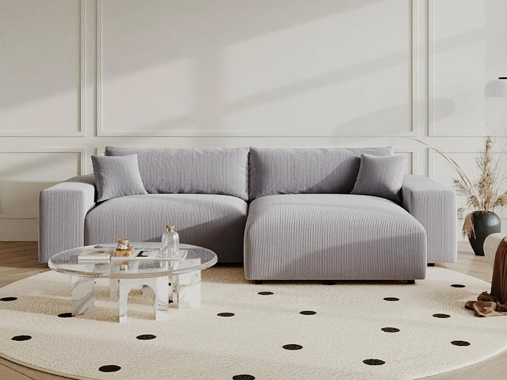 À la recherche d’un canapé d’angle à la fois confortable et esthétique ? Le canapé d’angle réversible en velours côtelé LUMIO est la solution ! Revêtu de velours côtelé, agrémenté de coussins décoratifs et doté de larges accoudoirs, il arbore un style design. En outre, la spacieuse méridienne et le garnissage de l’assise et du dossier vous assurent un confort optimal. Offrez-vous un moment de tranquillité !