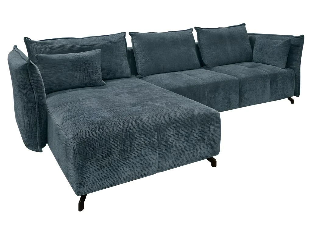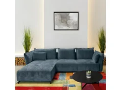 Optez pour le canapé d’angle réversible et convertible bleu RUFUS.