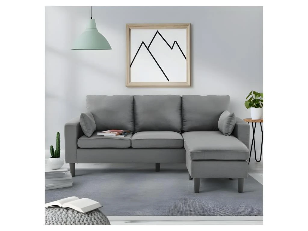 Canapé D’angle Réversible En Velours Côtelé Gris Clair LUMIO