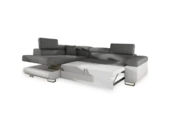 Canapé D’angle Convertible En Tissu Et Simili MIRABEAU – Bicolore Gris/blanc – Angle Gauche