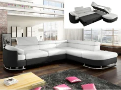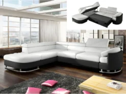 Canapé D’angle Convertible En Simili MYSEN – Blanc Et Noir – Angle Droit