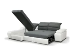 Canapé D’angle Convertible En Simili MYSEN – Blanc Et Noir – Angle Gauche
