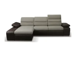 Canapé D’angle Convertible En Tissu Et Simili MIRABEAU – Bicolore Beige/marron – Angle Gauche