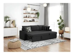 Canapé D’Angle MARIA Réversible Et Convertible Avec Coffre En Simili Et Microfibre – Noir