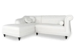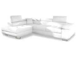 Canapé D’Angle MARIA Réversible Et Convertible Avec Coffre En Simili Et Microfibre – Blanc Et Gris