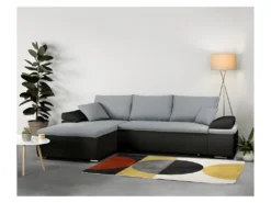 Canapé D’Angle SUZIE Convertible En Simili Et Microfibre – Angle Droit, Gris Et Noir