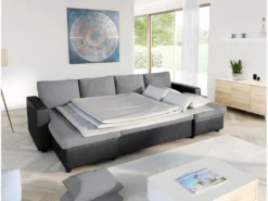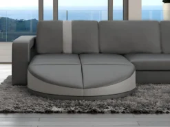 Canapé D’Angle Panoramique MARIA Convertible En Simili Et Microfibre – Gris Et Noir