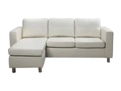 Canapé D’Angle SUZIE Convertible En Simili Et Microfibre – Angle Gauche, Blanc Et Gris