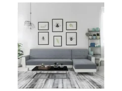 Canapé Panoramique 7 Places En Simili SICILE – Bicolore Blanc Et Gris