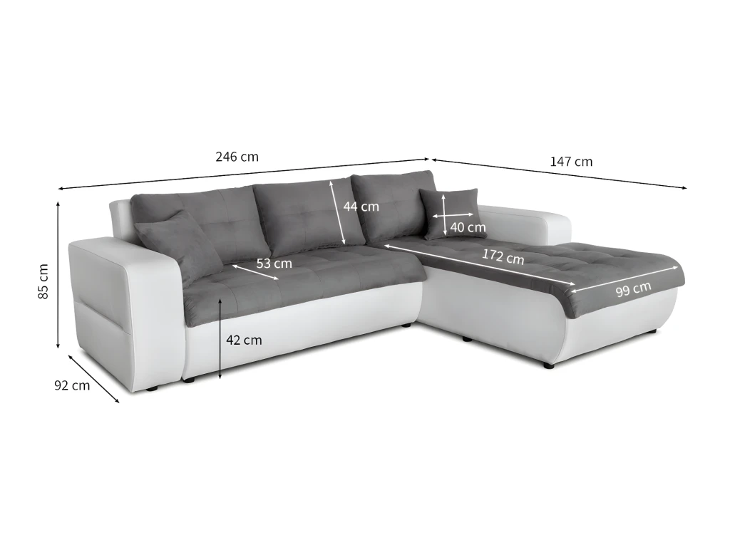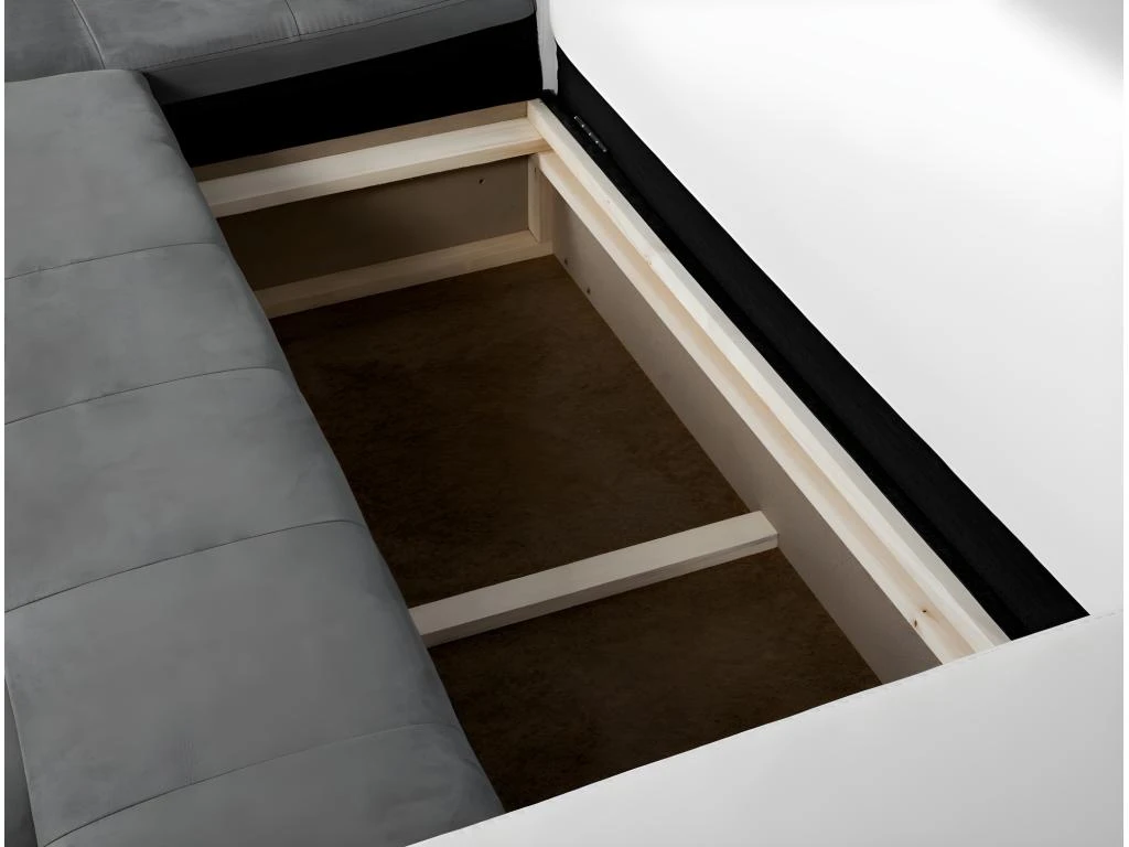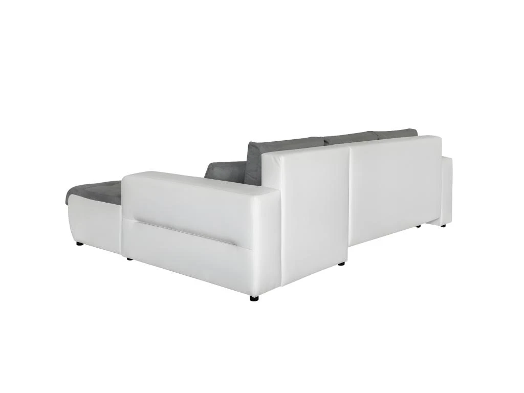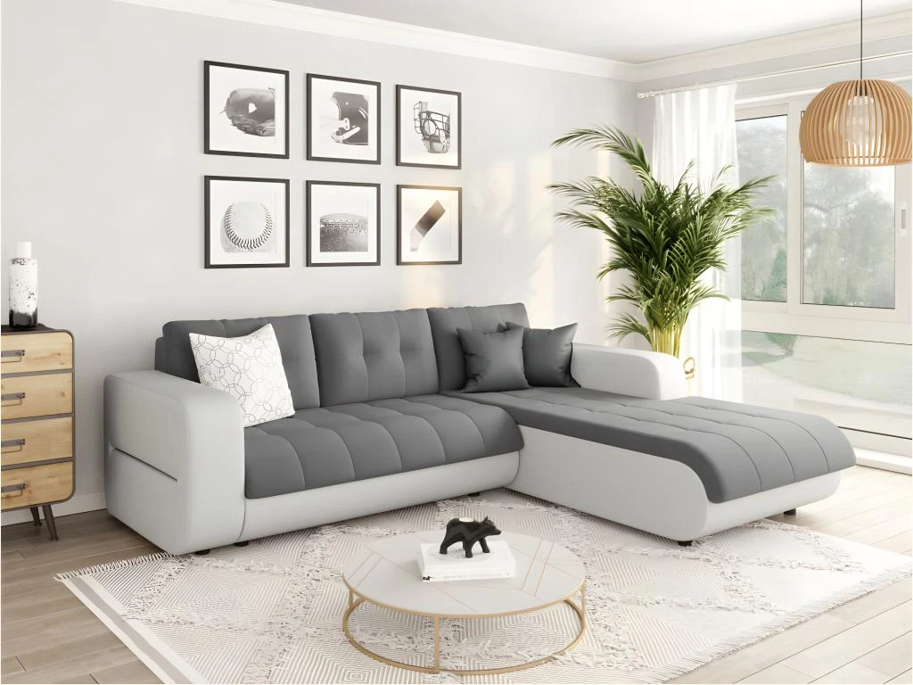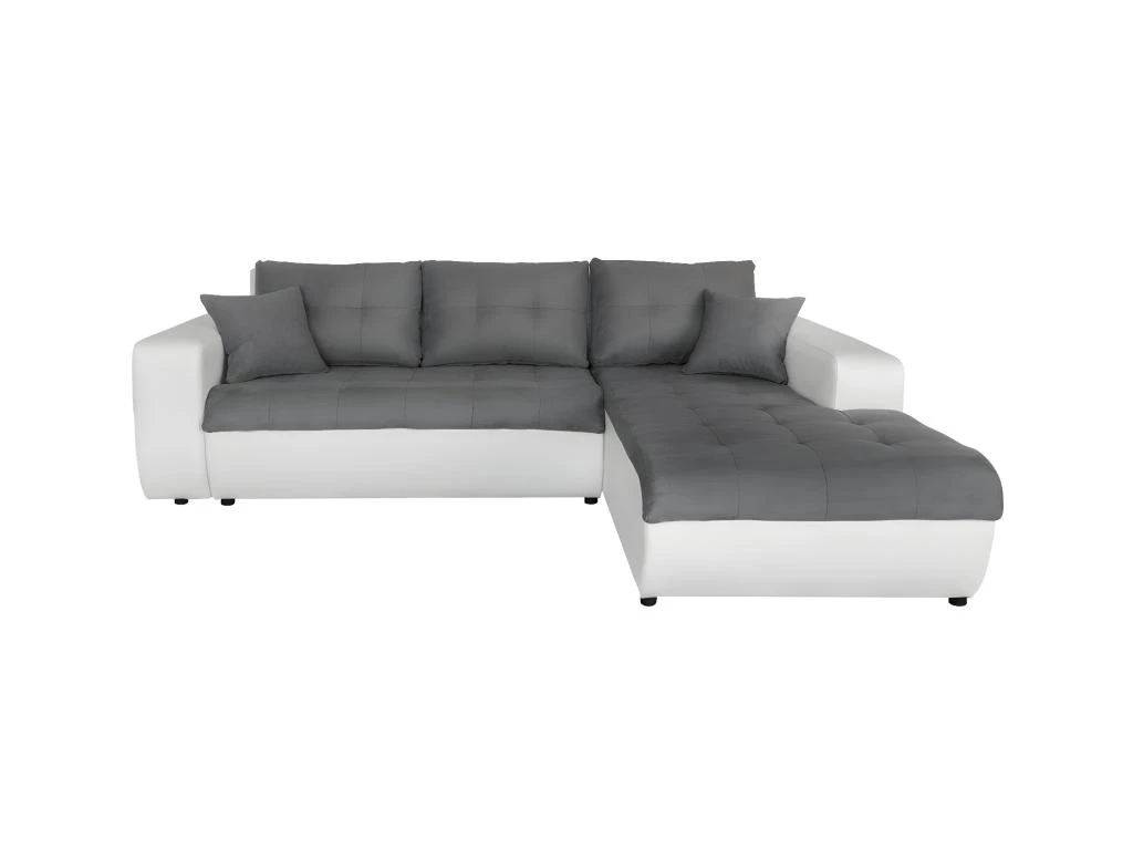 Canapé D’Angle SUZIE Convertible En Simili Et Microfibre – Angle Droit, Blanc Et Gris