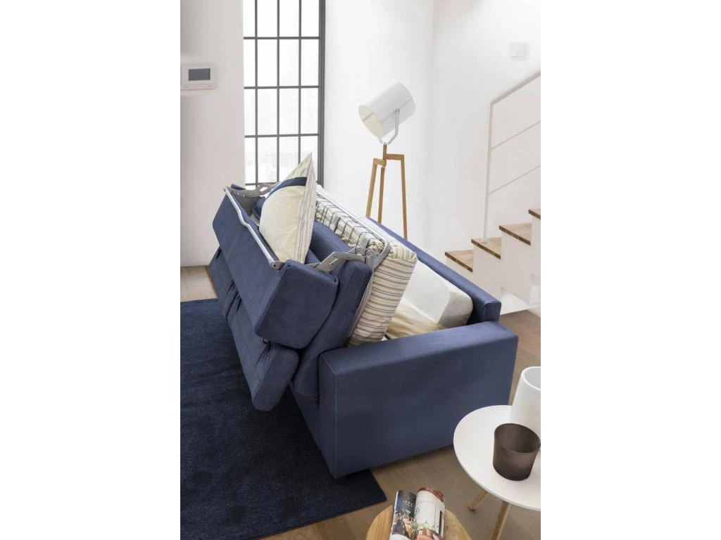 RÉSISTANCE ET CONFORT – La structure du produit en fer garantit durabilité, stabilité et résistance dans le temps – Ce CANAPÉ comprend un sommier à lattes électrosoudé, un matelas indéformable en polyuréthane expansé, des accoudoirs rembourrés et des appuis-tête inclinables confortables – Le rembourrage est en tissu polyester doux et délicat, entièrement déhoussable et lavable en machine jusqu’à 30 degrés, de couleur Bleu – Le tissu matelassé assure douceur au toucher et sérénité pendant le sommeil – D’un simple mouvement ce canapé devient un lit pratique pour invités, amis ou des proches – Le compartiment contenant les coussins inséré dans le dossier vous permettra de ranger les coussins inutilisés de manière pratique.