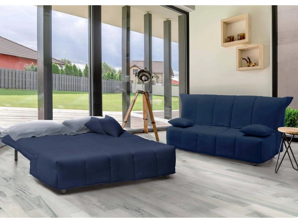 RÉSISTANCE ET CONFORT – La structure du produit en fer garantit durabilité, stabilité et résistance dans le temps – Ce CANAPÉ comprend un sommier à lattes électrosoudé, un matelas en polyuréthane expansé indéformable de 10cm de haut et deux coussins décoratifs de 40x40cm – Le revêtement est dans un tissu polyester bleu doux et délicat, entièrement déhoussable et lavable en machine jusqu’à 30 degrés – Le tissu matelassé assure douceur au toucher et sérénité pendant le sommeil – D’un simple mouvement ce canapé devient un lit pratique et le rembourrage devient une couette confortable.