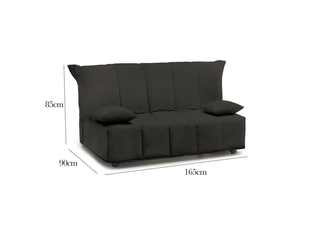 DIMENSIONS DU PRODUIT – Dimensions du canapé: Longueur 165 cm x Largeur 90 cm x Hauteur 85 cm – Dimensions du lit: Largeur 165 cm x Longueur 190 cm x Hauteur 40 cm environ – Charge maximale 400 kg