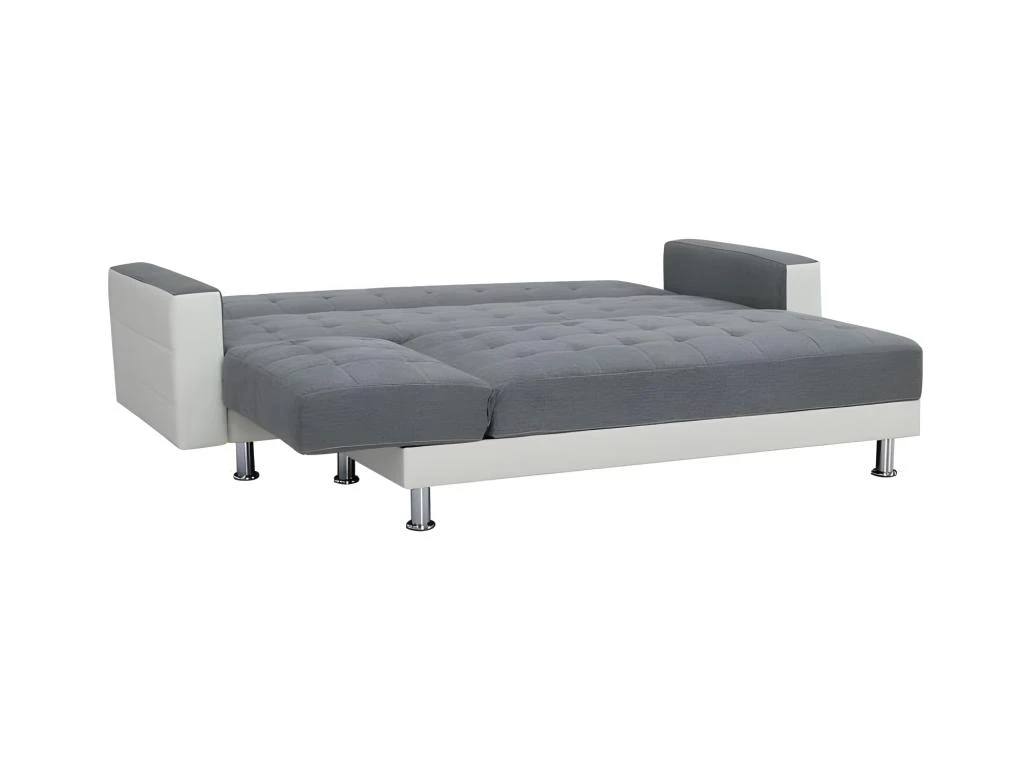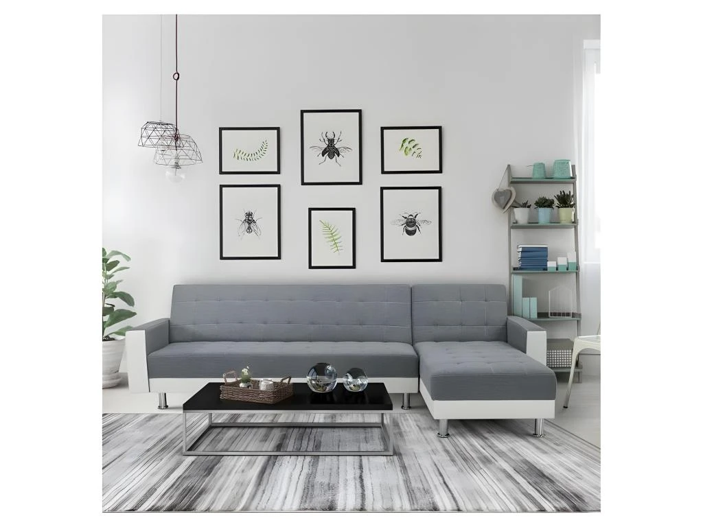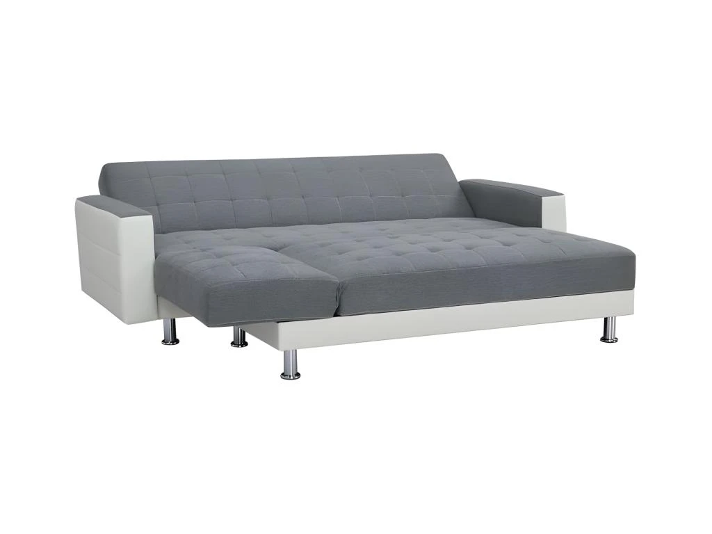 Canapé D’angle Gauche Convertible En Tissu Et Simili Gris Et Blanc FAREZ III
