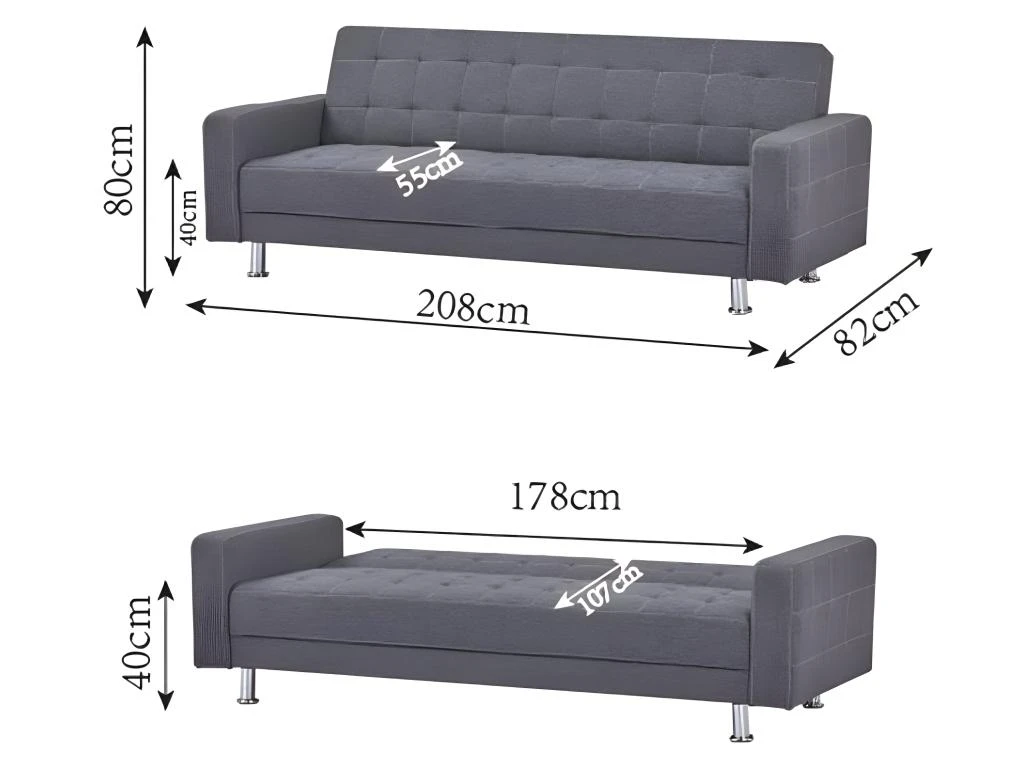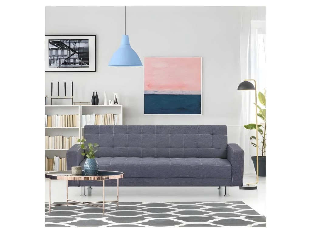 Banquette Lit BZ 140×190 Cm En Tissu Gris Et Matelas 12 Cm – CYRIAC