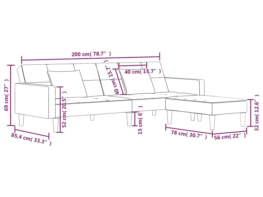 - Dimensions totales du canapé : 220 x 84,5 x 69 cm (L x l x H)