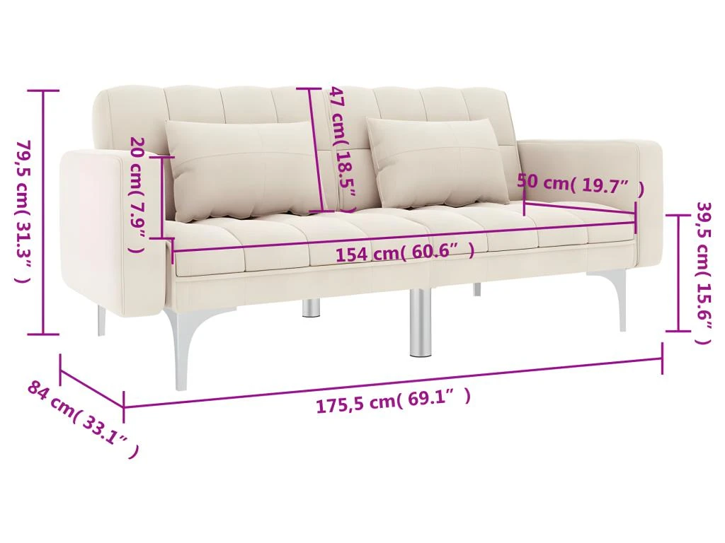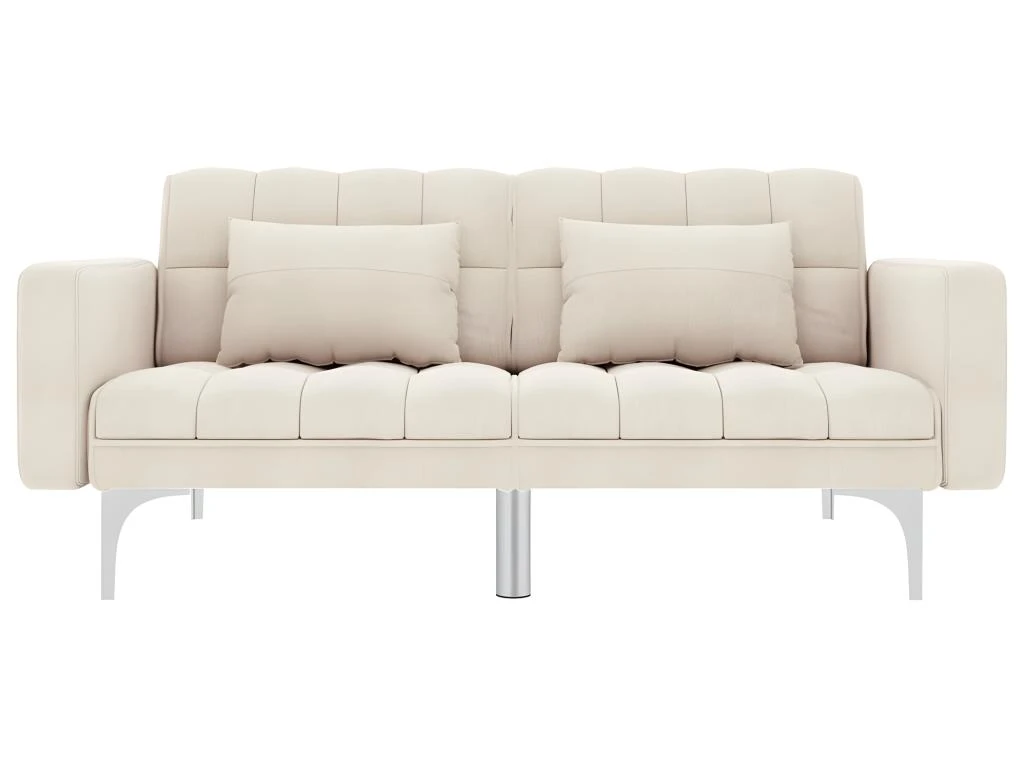 Le cadre en bois et les pieds en métal contribuent à sa robustesse, tandis qu’il est également épaississement rembourré pour plus de confort. Ce canapé-lit peut être converti d’un canapé en lit et inversement rapidement et facilement. En tant que canapé, il vous permet de choisir 3 positions d’inclinaison différentes. De plus, deux oreillers inclus ajoutent au confort d’assise supplémentaire.